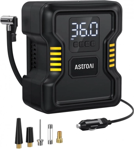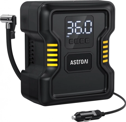 AstroAI donosi pouzdano rješenje za svakodnevno i hitno napuhavanje guma. Precizno postavljanje ciljane vrijednosti tlaka i funkcija auto stop štite od prenapuhavanja, što poboljšava upravljivost vozila i produljuje vijek trajanja guma. Osvijetljeni digitalni zaslon i integrirana LED svjetiljka olakšavaju rukovanje i u lošijim svjetlosnim uvjetima.
