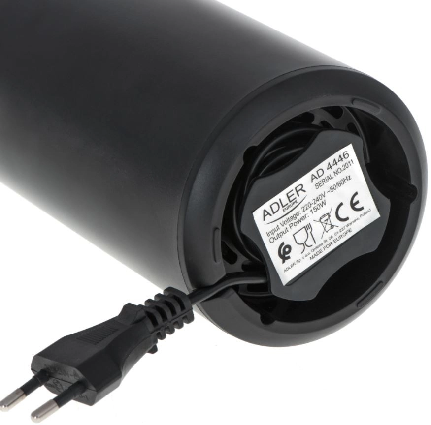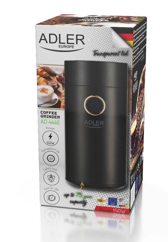 Električni mlinac za kavu Adler Europe AD 4446 izvrstan je pomoćnik za pripremu svježe mljevene kave. S kapacitetom od 75 g omogućuje vam samljeti idealnu količinu kave, bez gubitka njezina mirisa. Opremljen je pokrivalom koje čuva aromu i osigurava da mljevena kava bude dovoljna za više osoba. Maksimalna snaga od 150 W jamči brzo i učinkovito mljevenje, tako da nećete dugo čekati na svoju omiljenu kavu.