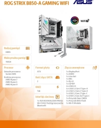 Nadogradite svoj gaming PC s bijelom matičnom pločom ROG STRIX B850-A GAMING WIFI za procesore AMD Ryzen 9000. Nudi DDR5, potpunu podršku za PCIe 5.0, brzo USB 20 Gb/s i najnoviji Wi‑Fi 7 – idealna kombinacija stila, performansi i povezivosti za moderne igre i aplikacije s AI.