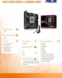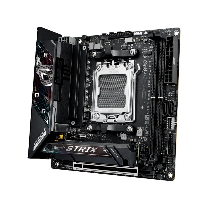 ROG STRIX B850-I GAMING WIFI spaja najnovije tehnologije u minimalistički mini‑ITX format. Zahvaljujući podršci za PCIe 5.0 za grafičke kartice i NVMe pohranu, brzim DDR5 memorijama i snažnim naponskim fazama, dobivate platformu spremnu za moderne igre, stvaranje sadržaja i AI radna opterećenja.