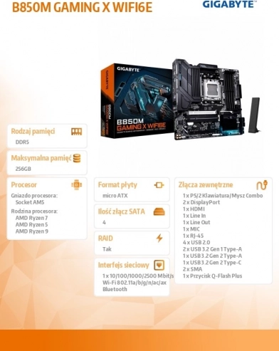 Gigabyte B650M Gaming X WiFi 6E donosi uravnoteženu kombinaciju performansi, stabilnosti i jednostavne izrade računala. Optimizacija X3D Turbo u BIOS‑u može u potpunosti iskoristiti potencijal procesora Ryzen 9000/8000/7000, uključujući X3D modele, te povećati glatkoću i broj sličica u igrama.