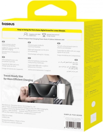 Uživajte u sigurnosti energije bilo kada i bilo gdje. BASEUS Compact 5000 mAh sa snagom od 20 W brzo puni moderne pametne telefone i dodatke. Zahvaljujući integriranom USB‑C konektoru možete ga priključiti izravno na telefon bez kabela ili koristiti priloženi USB‑C–USB‑C kabel.