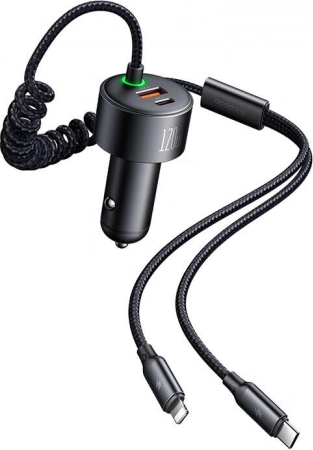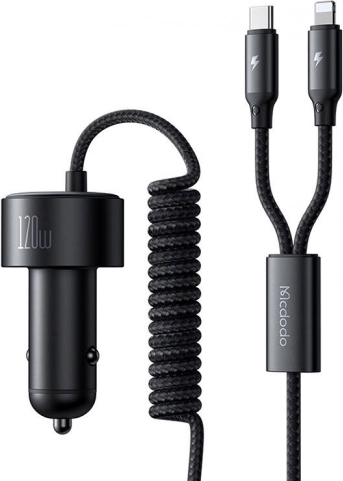 Snažan autopunjač Macdodo s ukupnom snagom do 120 W omogućuje brzo punjenje dvaju uređaja istodobno zahvaljujući integriranim USB‑C i Lightning kabelima. Praktični uvlačivi kabeli održavaju red u automobilu, dok pametna elektronika osigurava sigurno punjenje bez pregrijavanja i prenapona.