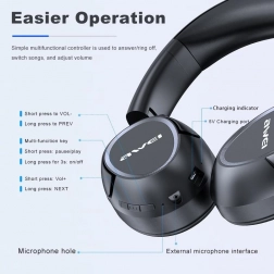 Uživajte u kvalitetnom slušanju bez kompromisa. Slušalice AWEI A770BL pružaju stereo zvuk s izraženim detaljima i pouzdano bežično povezivanje putem Bluetootha. Meki kožnati materijal jastučića za uši ugodno se prilagođava, pa su idealne za dulje slušanje kod kuće, u uredu i na putu.