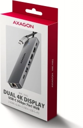 Proširite mogućnosti modernog prijenosnika jednim USB‑C kabelom (15 cm). AXAGON HMC-7HX2 nudi istodobno povezivanje dva 4K/60 Hz monitora, brzih perifernih uređaja preko USB 3.2 Gen 1 (5Gbps), stabilne GLAN mreže te istovremeno napaja prijenosnik do 100 W PD 3.0. Idealno za posao i zabavu kod kuće i na putu.