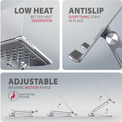 - Lagana i čvrsta metalna konstrukcija; protuklizne površine; više položaja; visina do 205 mm; podešavanje nagiba baze 180°–90° i kraka 180°–90°; bolji odvod topline; lako sklopiv