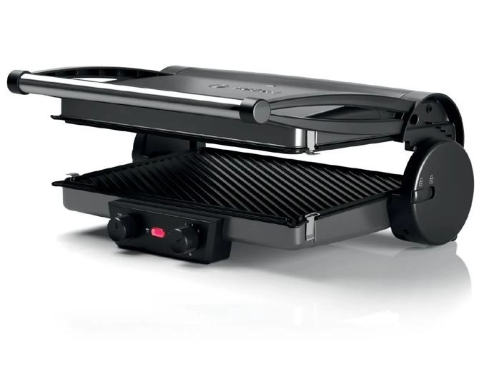 Zdrava kuhinja, brza kuhinja, ukusna kuhinja – tri položaja roštiljanja nude praktično neograničene mogućnosti za isprobavanje kreativnih ideja. Zatvoreni položaj kao kontaktni grill, otvoreni kao stolni grill, poluotvoreni s gornjim i donjim grijanjem za pečenje, zapekivanje ili podgrijavanje. Sočni odresci, ukusni hamburgeri, hrskavi zlatnosmeđi ražnjići, tost, panini, sendviči ili focaccia – uživajte u onome što volite. Osim toga, grill ima obostrane ploče: s rebrastom i glatkom površinom, koje su osobito prikladne za roštiljanje s malo masnoće.