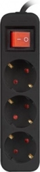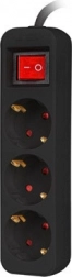 crni produžni kabel 1,5 m s 3 utičnice