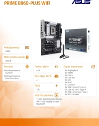 Osnovna ploča ASUS Prime B860-PLUS WIFI ponosi se ne samo svojim atraktivnim dizajnom, već prije svega svojom funkcionalnošću. Opremljena je proširivim slotovima - 4 x PCIe 4.0 x 16 i 1 x PCIe 5.0 x 16 - što olakšava proširenje sustava i istovremeno osigurava optimalnu propusnost i izvedbu.