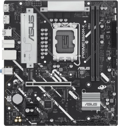 Kompaktna mATX matična ploča ASUS PRIME B860M-K s ležištem LGA1851 i podrškom za DDR5 donosi brz, stabilan i moderan temelj za vaše računalo. Nudi PCIe 4.0 za grafiku i proširenja, dva utora M.2, četiri SATA 6 Gb/s, podršku za RAID i kapacitet do 128 GB RAM-a s frekvencijama do 8800 MHz za gladak rad i u zahtjevnim zadacima.