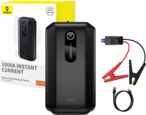 Kompaktni startni izvor BASEUS Super Energy pouzdano će pokrenuti vaše vozilo i s ispražnjenim akumulatorom. Nudi vršni strujni udar 1000 A, kapacitet 10000 mAh, sigurne zaštite od prenapona, pregrijavanja i kratkog spoja te ujedno služi kao power banka s USB i USB‑C 5 V/2,4 A. Idealan za svako vozilo i zimske uvjete.