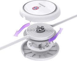 Integrirani mehanizam osigurava glatko izvlačenje i uvlačenje kabela, stabilan protok struje i dug vijek trajanja. Laka, kompaktna konstrukcija smanjuje nered s kabelima i idealna je za ruksak ili džep. Posebno izdanje s logotipom FC Bayern München razveselit će sve obožavatelje modernim, čistim dizajnom.