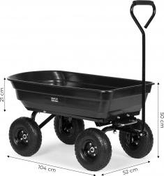 Iskusite jednostavno i učinkovito vrtlarenje uz vrtna kolica MultiGarden. Ovaj praktičan pomoćnik je idealan za vrtove, posjede i farme. Sa svojom velikom površinom za teret 94x52 cm i maksimalnim opterećenjem od 200 kg kolica omogućuju lako prebacivanje zemlje, drva, kamenja, alata ili sadnica. Izdržljiva metalna konstrukcija osigurava dugi vijek trajanja, dok veliki napuhujući kotači s profilom omogućuju jednostavan transport po neravnom terenu.