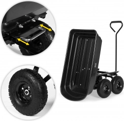 Uz to, kolica imaju nagibnu funkciju, koja olakšava istovar, i velike kotače od 25 cm, koji osiguravaju glatko kretanje i stabilnost čak i na mekoj površini.