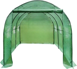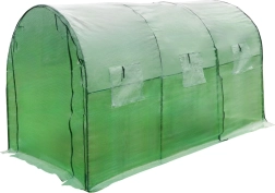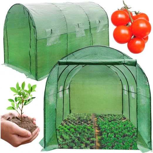 Staklenik je izrađen od čvrste PE folije s gramaturom 130 g/m², ojačane mrežom, što osigurava optimalne uvjete za uzgoj i dug životni vijek proizvoda. Okvir od pocinčanog čelika osigurava stabilnost i otpornost na koroziju, pa plastičnjak služi kroz mnoge sezone.