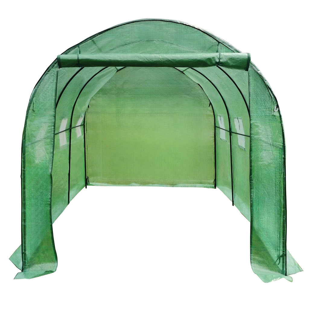 Šest prozora s mrežom protiv komaraca osiguravaju pravilnu cirkulaciju zraka i istovremeno štite unutrašnjost od insekata. Prostrani ulaz sa zatvaračem omogućava ugodan pristup usjevima i olakšava njihovo održavanje.