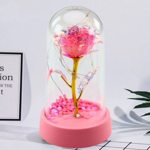 - LED osvjetljenje: Nježno LED svjetlo naglašava profinjenost ruže i stvara ugodnu atmosferu, idealno za dekoraciju interijera i romantične trenutke.