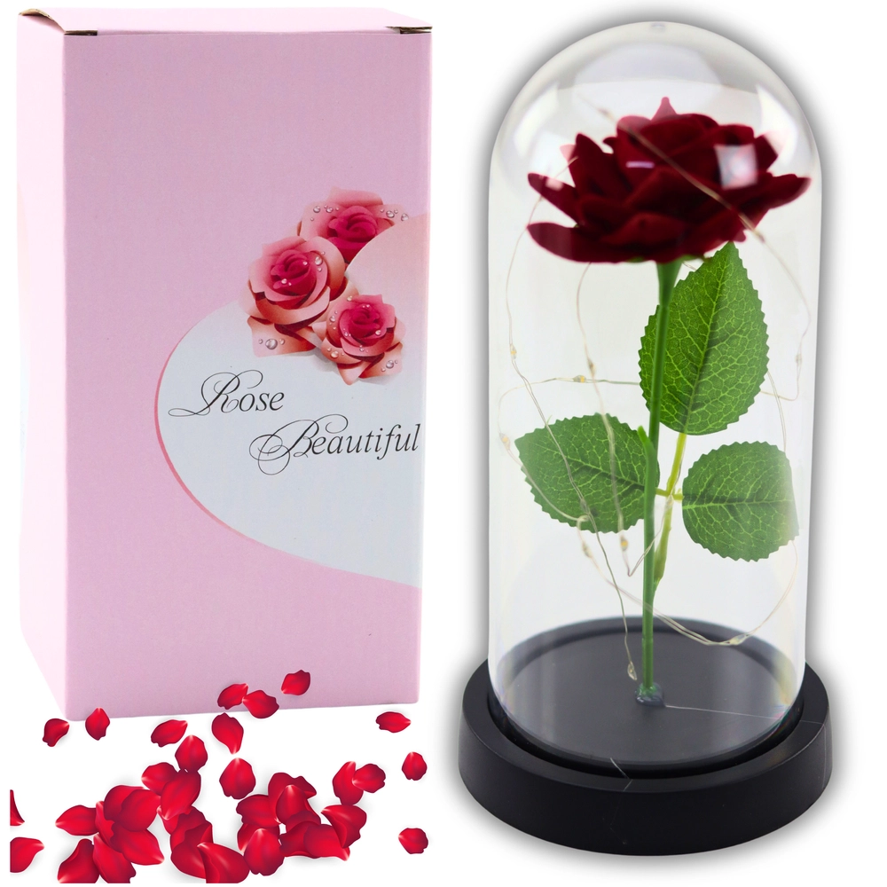 - LED osvjetljenje – Nježno svjetlo naglašava ljepotu ruže i stvara toplu atmosferu.