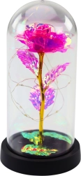 Kristalna ruža pod kupolom s LED osvjetljenjem elegantan je i simboličan dar koji izražava vaše osjećaje i unosi izniman karakter u svaki interijer. Njezine mijenjajuće boje pod utjecajem nježnog LED svjetla stvaraju nezaboravnu atmosferu, idealnu za romantične prigode.