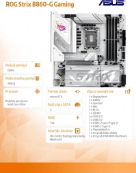 Sastavite kompaktno, ali beskompromisno gaming računalo s pločom ROG Strix B860-G Gaming WiFi. Zahvaljujući podršci za PCIe 5.0 za najnovije grafičke kartice, brze DDR5 module i Thunderbolt 4 portove, dobit ćete vrhunski protok podataka i buduću proširivost. Integrirani Wi‑Fi 7 i bogat stražnji panel s USB priključcima osiguravaju ultra brzo povezivanje kod kuće i na LAN partyju.