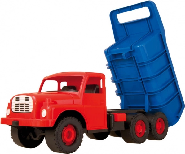 Legendarna Tatra 148 u modernoj izvedbi za male graditelje! Robustni plastični kamion s nosivošću do 100 kg, sigurnosnom blokadom kipera i širokim kotačima savladava pijesak, vrt i dječju igru. Zahvaljujući ručki iznad kabine odlično se upravlja i prikladan je već od 1. godine.