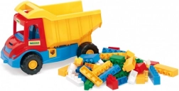 Robustan dječji kiper Multi Truck 38 cm s podiznom korbom i setom raznobojnih mini kockica prevozi pijesak, kamenčiće i igračke. Zahvaljujući laganoj i izdržljivoj konstrukciji snalazi se na plaži, u pijesku i kod kuće.