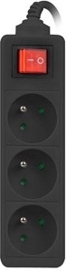Produžni kabel s 3 utičnice s prekidačem, 3 m, crni, bakreni kabel