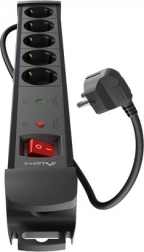Produžni razdjelnik nudi pet uzemljenih utičnica, LED kontrolu statusa zaštite, pozadinski osvijetljen prekidač i dječje zaštitne kapice. Praktične montažne rupe za vertikalnu i horizontalnu instalaciju te promišljen oblik za udobno vođenje i pohranu dovodnog kabela pomažu održati red bez zapetljanih kabela.
