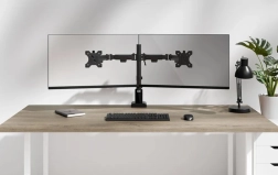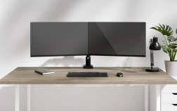 Ručna prilagodba visine i dubine nosača stolnog NERO omogućuje vam prilagodbu radnog prostora vašim individualnim potrebama. Inteligentni mehanizam zaustavljanja na 180° sprječava kontakt držača sa zidom ili pregradom kada je postavljen u njihovoj blizini, čime štiti vaš radni prostor. Držač također sadrži funkcionalan sustav za upravljanje kabelima i prostor za odlaganje mobitela, što održava radnu površinu čistom i urednom.