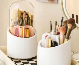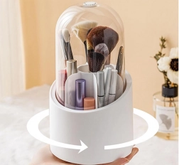 Praktični okretni organizator za kozmetiku spaja elegantan izgled i maksimalnu funkcionalnost. Zahvaljujući prozirnom poklopcu vaša je kozmetika zaštićena od prašine i vlage, dok 360° okretno postolje omogućuje brz pristup svim proizvodima jednim pokretom.