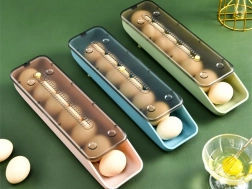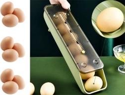 Nema više nestabilnih kutijica i razbijenih jaja. Ovaj pametni spremnik za jaja s kliznim poklopcem drži jaja sigurno na mjestu, a zahvaljujući nagibu se nakon vađenja jednog komada sljedeće automatski pomiče naprijed. Integrirani klizač datuma pomaže vam označiti dan umetanja ili potrošnje, pa svježinu uvijek imate pod kontrolom.