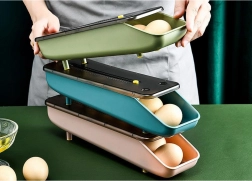 Organizator je dizajniran za maksimalnu uštedu prostora u hladnjaku i jednostavno slaganje više komada jedan na drugi. Glatke površine omogućuju brzo čišćenje, a izdržljiva plastična izvedba idealna je za svakodnevnu upotrebu.