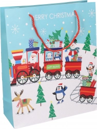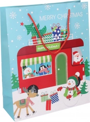Ova božićna poklon-vrećica u univerzalnoj srednjoj veličini idealna je za knjige, kozmetiku, manje dekoracije i druge darove. Zahvaljujući čvrstoj izradi i praktičnim ručkama osigurava udobno nošenje i reprezentativan izgled bez kompliciranog zamatanja.