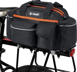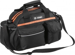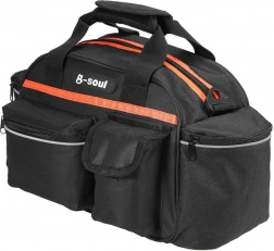 Ova univerzalna biciklistička torba marke B-soul odgovara za svaki nosač bicikla. Karakterizira je glavni prostrani pretinac i četiri vanjska džepa, koji omogućuju jednostavan pristup potrebnim stvarima. Izrađena je od izdržljivih materijala koji štite od nepovoljnih vremenskih uvjeta.