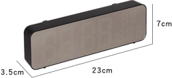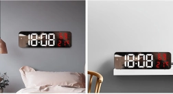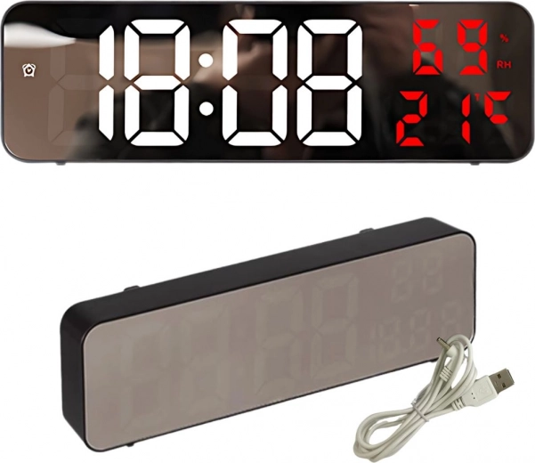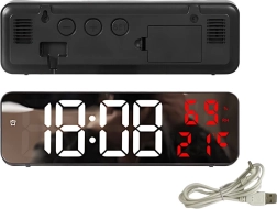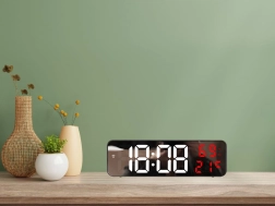 Ovaj digitalni sat ima multifunkcionalne značajke. Prikazuje vrijeme, datum, temperaturu u stupnjevima Celzijusa ili Fahrenheita, razinu vlažnosti i čak služi kao budilica s funkcijom odgode. Zahvaljujući zrcalnoj površini također djeluje kao dekorativni element u svakom interijeru.