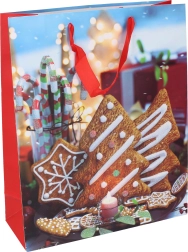 Božićna poklon vrećica veličine M je idealan izbor za pakiranje srednje velikih darova. Ova vrećica je dostupna u četiri različita motiva koji unose čaroliju Božića u svaki kutak vašeg doma. Zahvaljujući svojim dimenzijama 26x32x10 cm pruža dovoljno prostora za različite vrste darova.