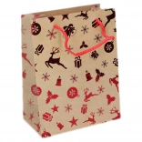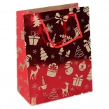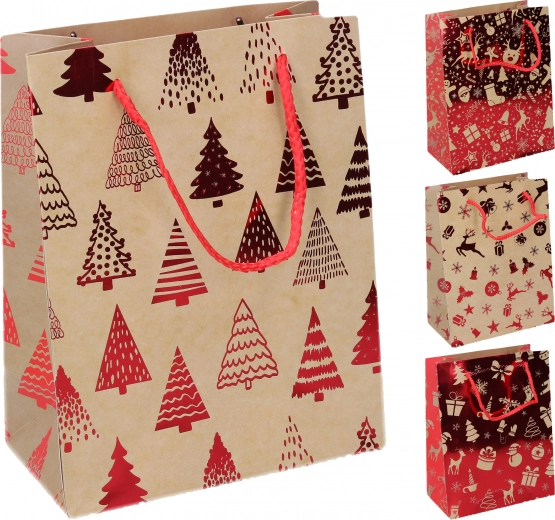 Prekrasna božićna poklon vrećica dimenzija 23x18x10 cm s raznim motivima savršena je za pakiranje manjih darova. Omogućuje brzo i elegantno poklon pakiranje bez nepotrebnih omota.