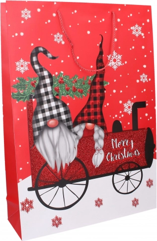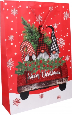 Božićna poklon-vrećica XL dimenzija 40 × 56 × 13 cm. Idealna za velike poklone, dostupna u 2 različita motiva. Stilizirano i brzo božićno pakiranje.