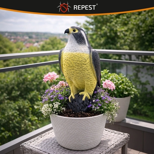 Realistično plašilo ptica u obliku sokola učinkovito štiti balkone, terase i vrtove. Zahvaljujući detaljnoj izradi i prirodnom obojenju djeluje kao prirodni grabežljivac i pouzdano odvraća golubove, čavke, vrapce, gačce i galebove. Otporno je na UV zračenje i vremenske uvjete, može se opteretiti pijeskom za veću stabilnost i lako premještati prema potrebi.