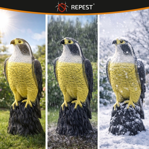 Realistična maketa sokola učinkovito je i sigurno rješenje za zaštitu vanjskih i unutarnjih prostora. Prirodan izgled grabežljivca pojačava instinktivni strah manjih ptica i pomaže štititi urod, fasade ili balkone bez kemikalija i buke. Pogodno i kao vizualni plašilo za manje glodavce.