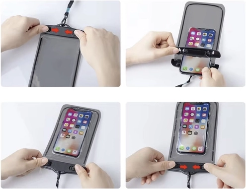Dvostruki zatvarač s osiguračem pruža čvrsto brtvljenje za bezbrižnost pri kupanju, plivanju ili vodenim sportovima. Zahvaljujući praktičnoj petlji/uzici za vrat telefon vam je uvijek pri ruci i zaštićen. Futrola je idealna za odmor, bazen, paddleboard, kajak i za kišne dane u gradu.