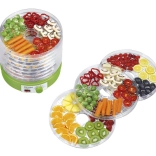 Sušilica za hranu Concept donosi izvrsno rješenje za produljenje trajnosti namirnica bez gubitka njihovih hranjivih vrijednosti. XXL veličina s 12 sita omogućuje pripremu velikih zaliha sušenog povrća i voća za zimu. Rezultat će biti ukusne juhe ili zdravi kompoti koji će razveseliti cijelu obitelj. Praktično održavanje – sušilica je dizajnirana tako da je čišćenje što jednostavnije, sita se mogu prati u perilici posuđa. Ravnomjerno sušenje osigurano je integriranim ventilatorom s posebno oblikovanim ventilacijskim otvorima koji jamče izvrsne rezultate na svakoj razini sušilice.