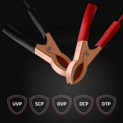 Brza instalacija: crvenu stezaljku spojite na + pol, crnu na – pol, odaberite režim i punjenje može početi. Kompaktna i izdržljiva izvedba olakšava uporabu kod kuće i u radionici.