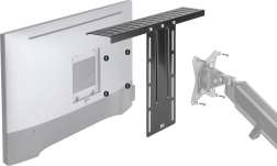 Praktična polica koja se pričvršćuje izravno na monitor ili putem montaže kompatibilne sa standardom VESA 100x100 mm. Pruža fleksibilnost za precizno postavljanje vaših komponenti zahvaljujući mogućnosti podešavanja visine i montaže police u različitim smjerovima za individualne potrebe.