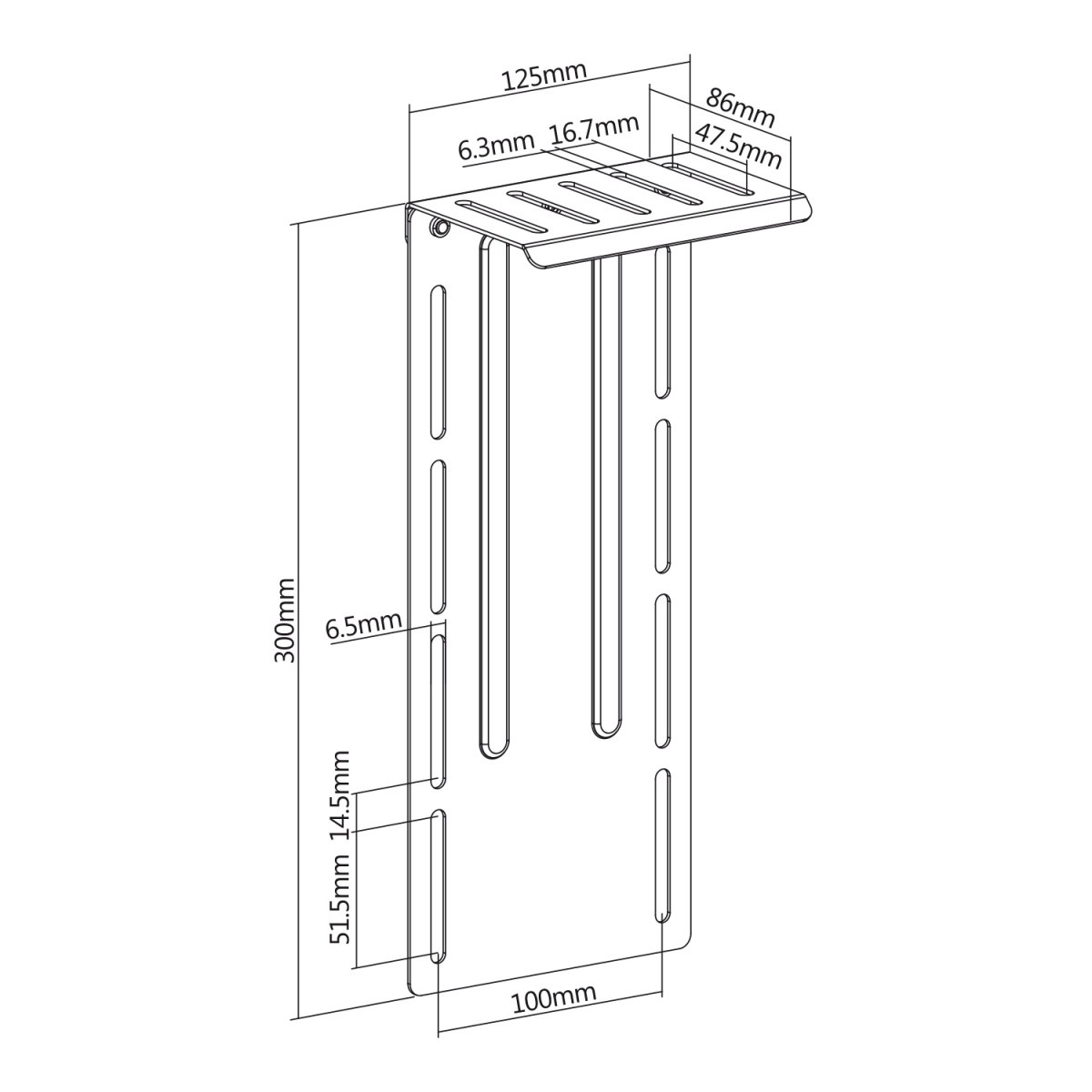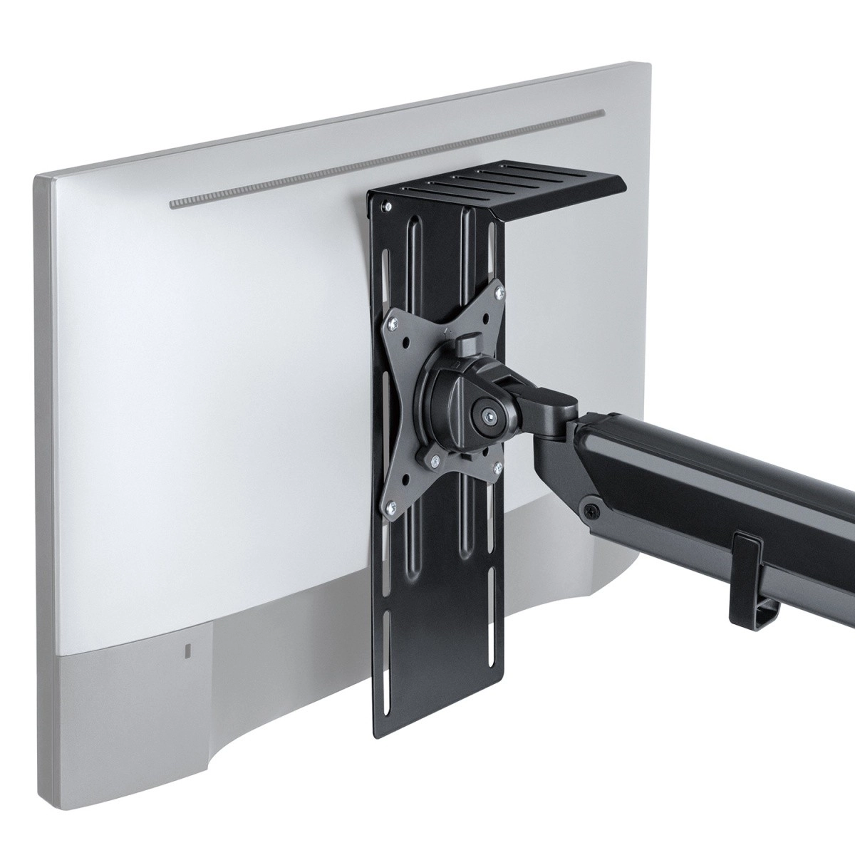 Univerzalna kompatibilnost sa standardnim VESA otvorima 100x100 mm jamči jednostavnu instalaciju. Podešavanje visine i mogućnost montaže s policom naprijed ili nazad omogućuju prilagodbu položaja pričvršćenog uređaja prema vašim potrebama.