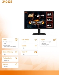 Uživajte u glatkom igranju na kompaktnom i snažnom monitoru dijagonale 23,8", s tehnologijom Fast IPS i iznimno brzom brzinom osvježavanja od 180 Hz. Zahvaljujući kratkom odzivu, živim bojama i priključcima HDMI i DisplayPort dobit ćete oštru sliku, izvrsnu fluidnost i jednostavno povezivanje za PC i konzole.