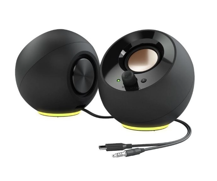 Uživajte u čistom i punom zvuku iz iznenađujuće kompaktnog kućišta. Creative Pebble SE nudi snagu do 4,4 W RMS uz podršku pasivnih radijatora za bolju dubinu basa. Ikonična konstrukcija s driverima nagnutim pod kutom od 45° usmjerava zvuk izravno prema vašim ušima za maksimalan doživljaj pri slušanju glazbe, gledanju videa i igranju.