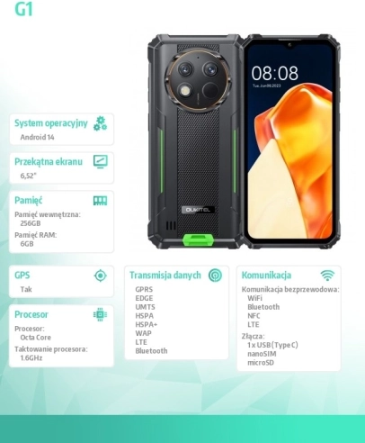 Oukitel G1 opremljen je glavnom 48 MP kamerom s makro funkcijom i prednjom 5 MP kamerom, koje jamče izvrsne fotografije u pokretu. Najnoviji operativni sustav Android 14 donosi poboljšano upravljanje i sigurnost.