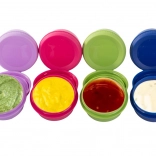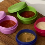 Uživajte u svojim omiljenim umacima i dipovima gdje god želite – ove šarene posudice zapremine 80 ml imaju nepropusne poklopce koji pouzdano sprječavaju istjecanje. Odlične su za lunch box, torbu ili ruksak te održavaju sadržaj svježim i higijenski pohranjenim.