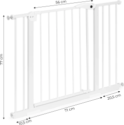 Podesite širinu barijere pomoću priloženih proširujućih panela i stvorite idealno rješenje za različite dimenzije vrata i stepenica. Barijera je također izvrsna za osiguranje prostora od vaših četveronožnih prijatelja.